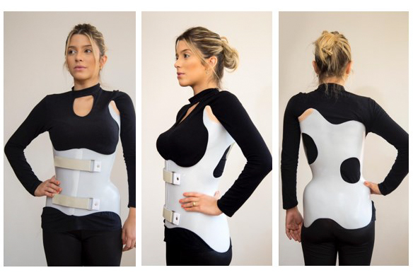 A escoliose é uma anormalidade tridimensional, e a órtese, colete 3D para tratamento de escoliose, atua na correção da coluna em todos os três planos: coronal, sagital e transverso. O colete para escoliose 3D, e feito sob medida, apresenta um design de suporte aprimorado com uma combinação exclusiva de forças de deslocamento/empurrão que move a coluna para a posição correta. Há espaço adicional para correção rotacional e mecânica respiratória.